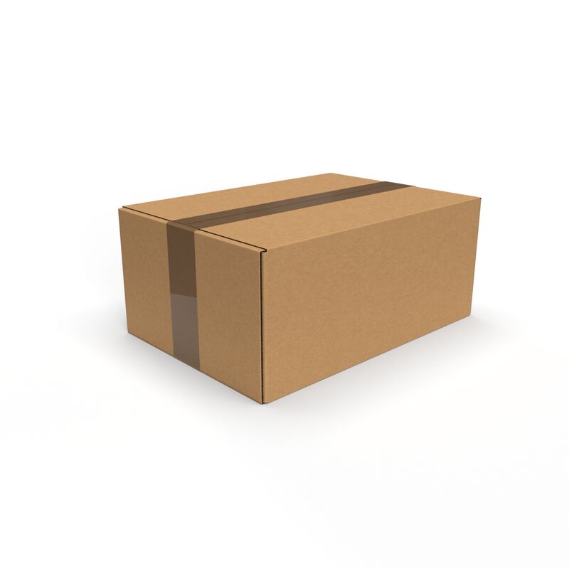 Der Versandkarton besteht aus 1.2 B-Welle Wellpappe und hat eine Stärke von ca. 3 mm. Die Belastbarkeit des Kartons beträgt bei verteilter Last 20 kg. Die Grundfarbe des Kartons ist Braun.